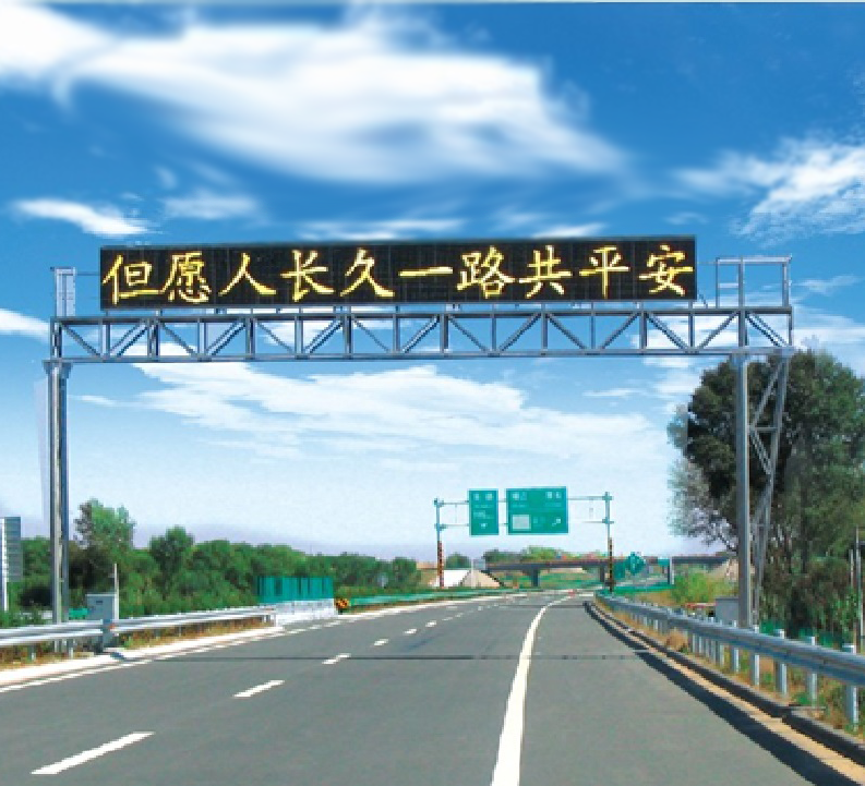 V8420型门架式可变信息情报板由门架、LED显示屏、控制器、供电系统、通讯系统组成,安装于高速公路车道正上方,由监控平台控制,可显示文字及图形,用于向驾驶员发布路况、诱导、宣传及警示信息。