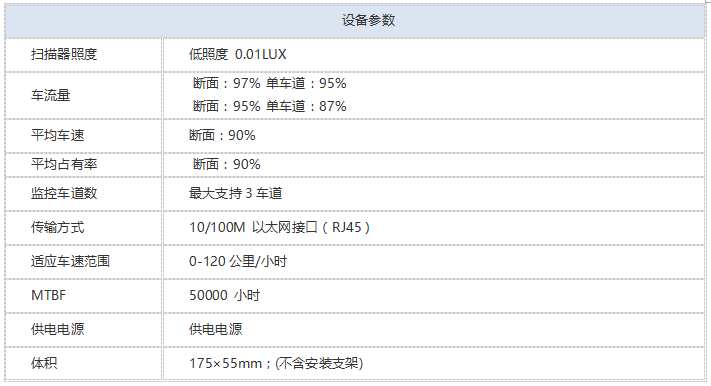 ◇ 采用视频方式对过往车辆进行分析处理,可输出的交通参数:车流量,占有率,平均车速,平均车头距等◇ 一台设备可以检测三条车道◇ 采用低照度宽动态的扫描器,满足低照度环境条件下使用◇ 产品采用高集成、一体化设计,可靠性高,维护简便,安装成本低廉◇ 全铝型材外壳,外观简洁大方